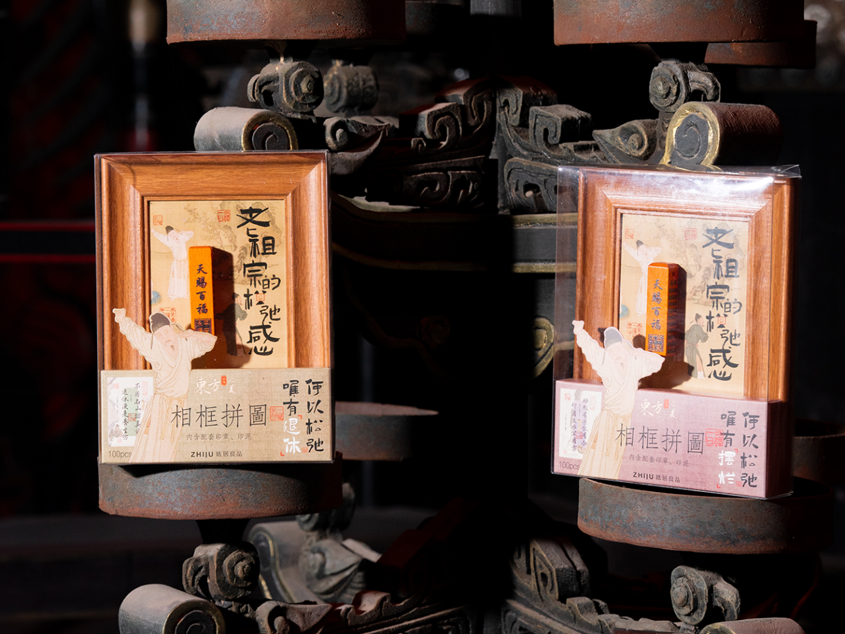 The ‘Ancestral Sense of Relaxation’ series features three 100-piece mini blue card puzzles. It cleverly blends traditional culture with the modern pursuit of ‘relaxation.’ The puzzle images include classical figures, calligraphy, and philosophical verses, conveying the ancestral wisdom and philosophy of a leisurely and carefree lifestyle.