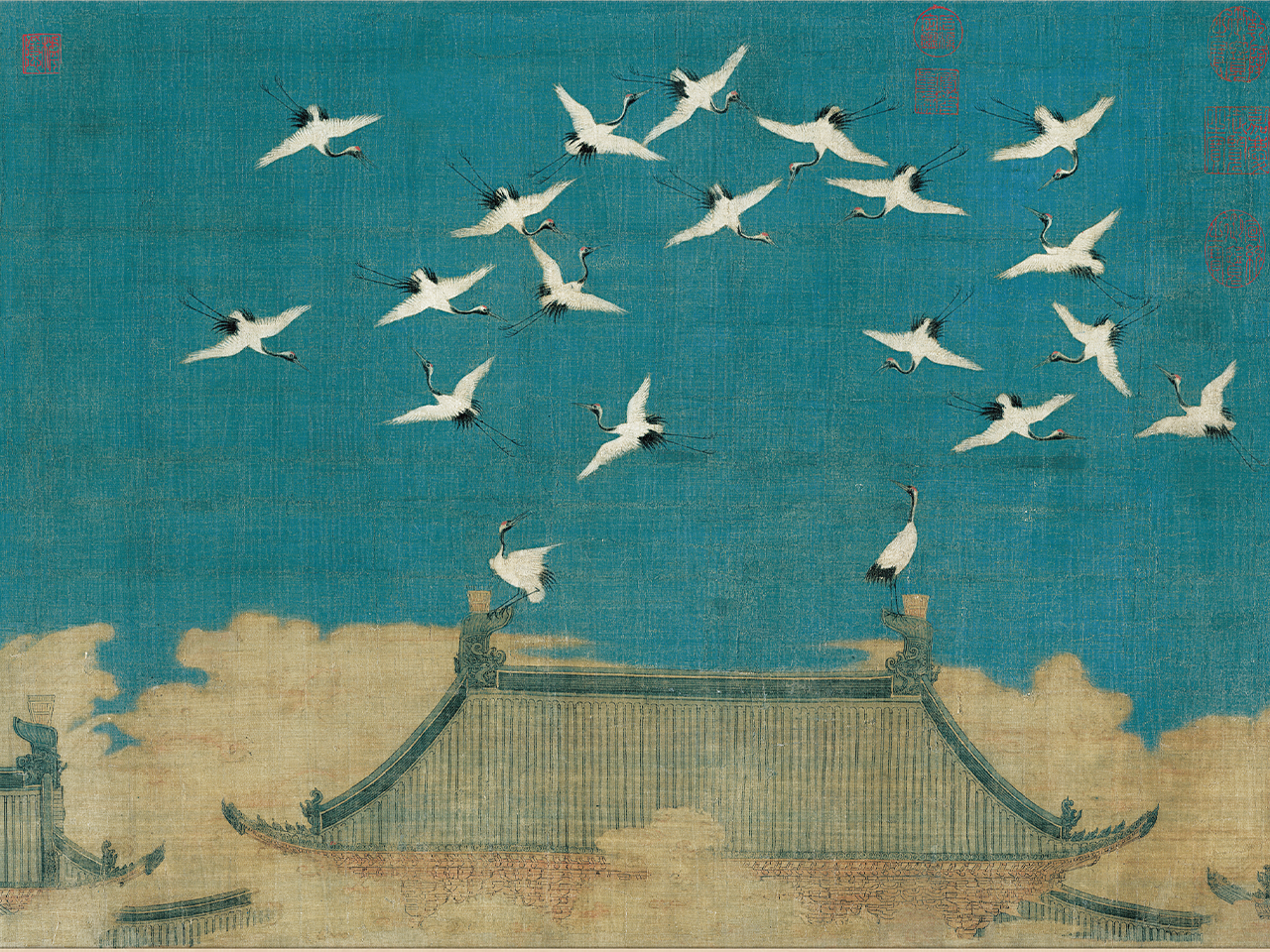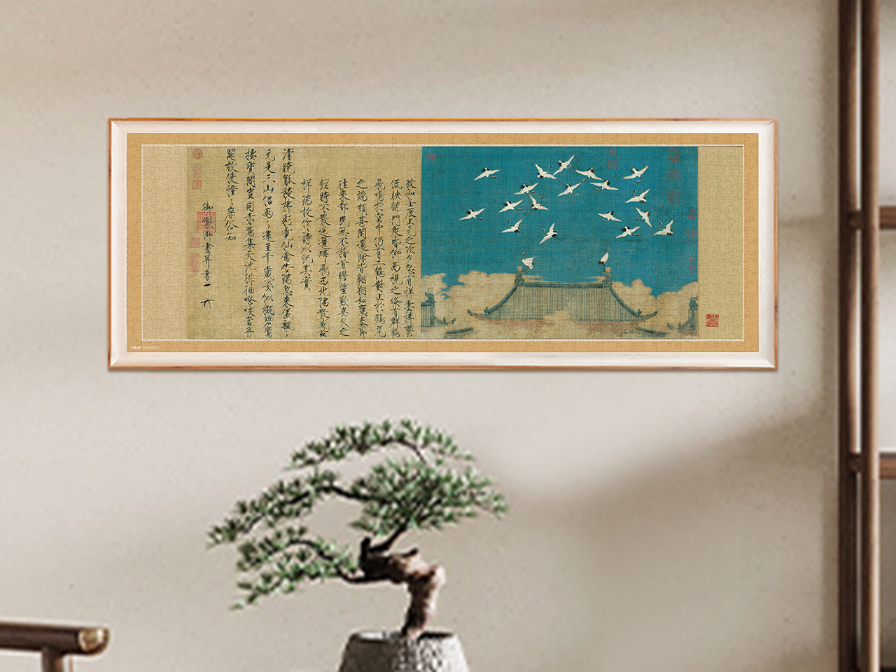 《瑞鹤图》是北宋徽宗赵佶创作的绢本彩画。其高51厘米,宽138.2厘米,描绘了汴梁宣德门上空飞舞的仙鹤群,祥云缭绕。这件艺术品不仅具有很高的艺术价值,还承载着丰富的历史文化意义。
