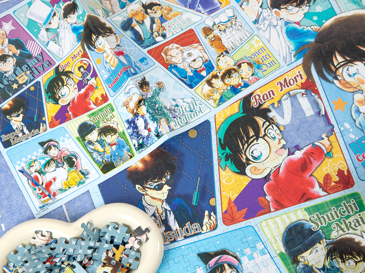 通过这款精心设计的1000片拼图,开启一段穿越《名侦探柯南》世界的怀旧之旅。它精心汇集了《名侦探柯南》宇宙中温暖人心的故事与难忘瞬间,定能让你会心一笑。艺术品采用独特的拼贴风格设计,呈现多个精选场景:见证柯南与服部平次在雪中并肩而行,感受这对信赖伙伴间的深厚羁绊;捕捉柯南与小兰之间的温馨时刻;重温柯南与家人间的温情互动;体验警校五人组行动时的惊险瞬间,以及怪盗基德的神秘登场。