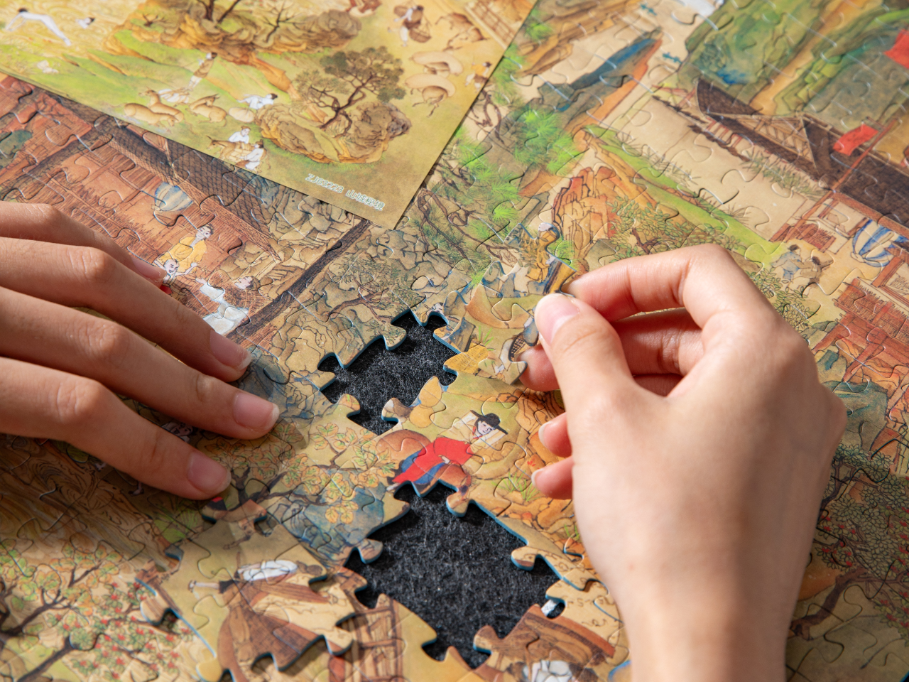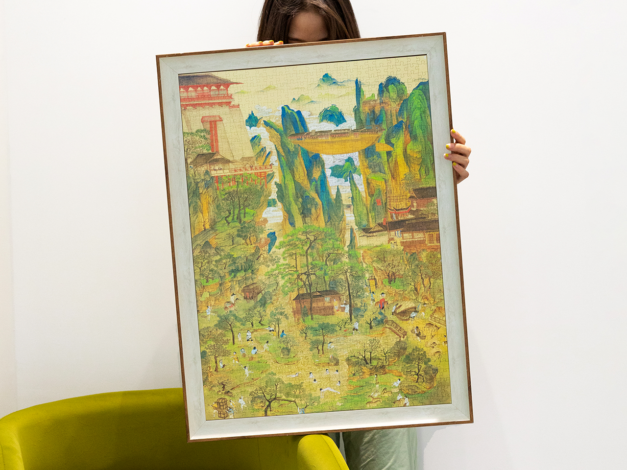 整幅作品将奇幻想象与传统山水、人文生活完美融合,色彩明快鲜活,构图精雕细琢。既展现了中国山水画的典雅韵味,又通过巧妙的建筑与场景设计,构筑出超越现实却充满生活温度的奇幻世界,仿佛在诉说一段跨越时空的独特故事。