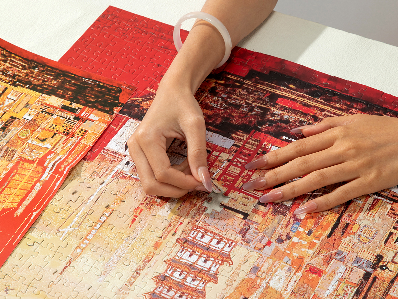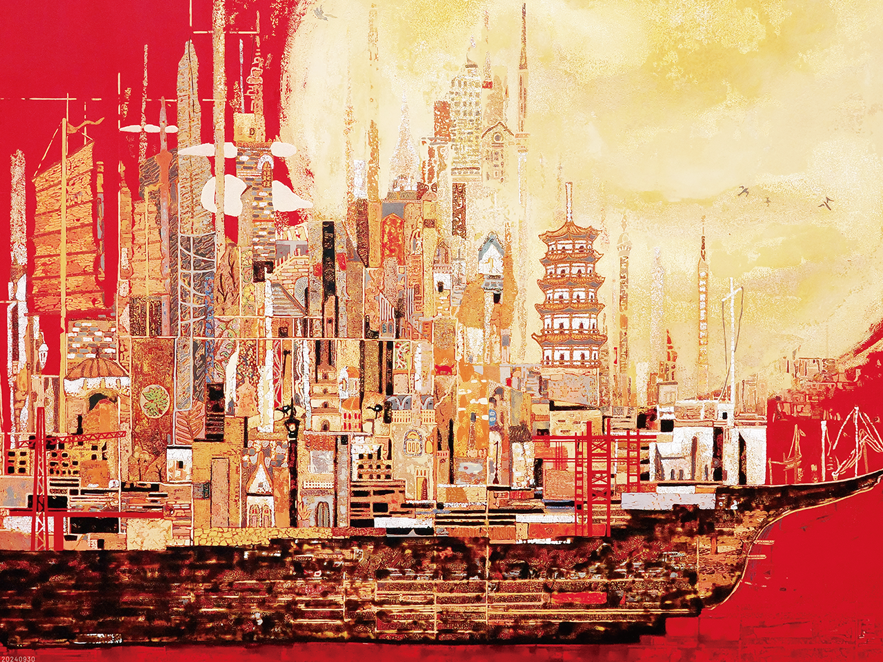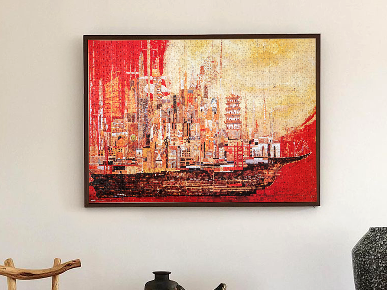 甲板上,古老庙宇与现代建筑比肩而立。这是实体航船,还是承载文化与时代重量的渡舟?斑驳质感的画面交织着历史、现实与未来愿景。不止是拼图,更是一场沉思之旅。拼合的过程化作对文明脉搏的触觉探索——一场与文化遗产的无声对话。