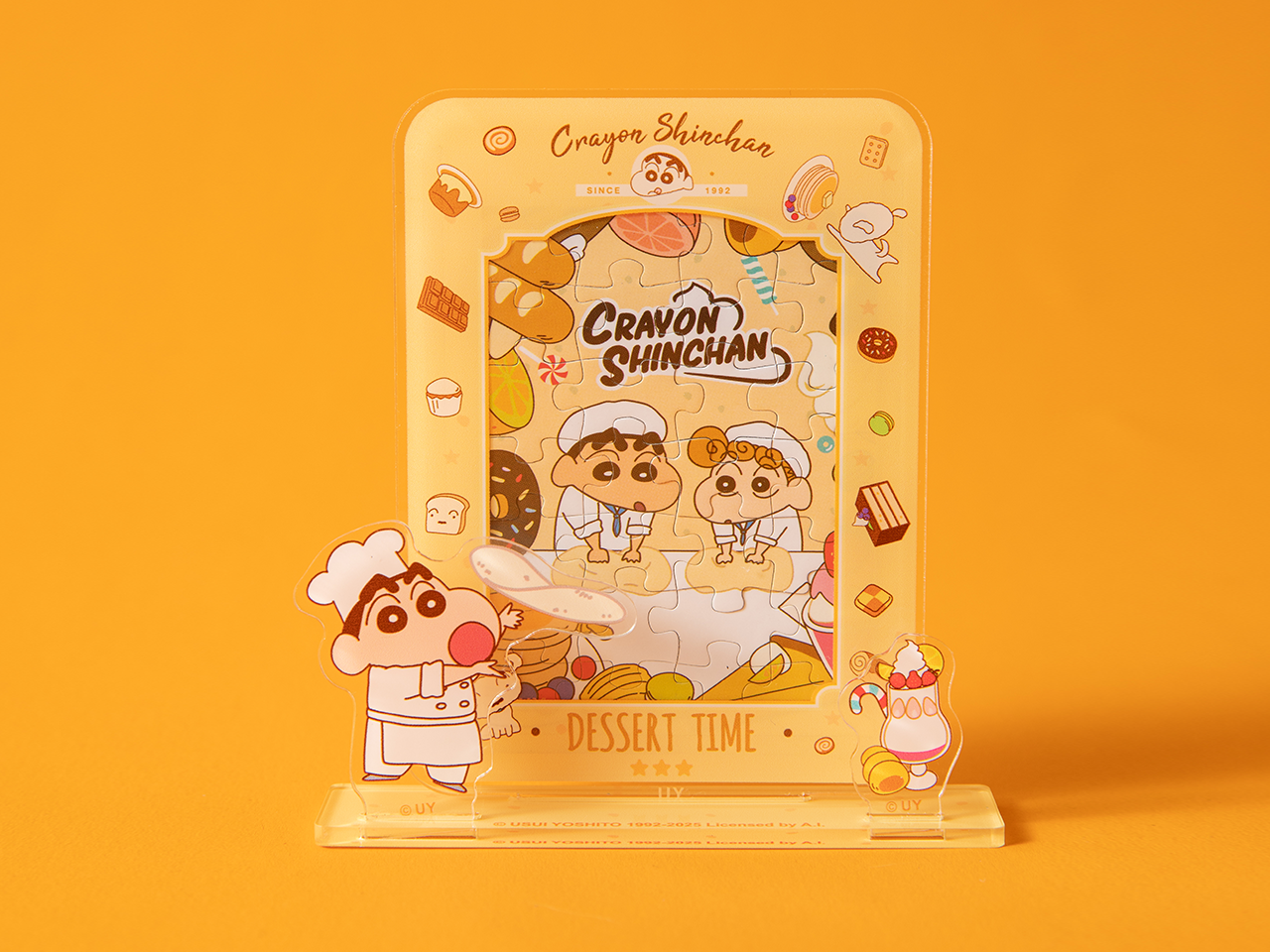 这款温馨舒缓的蜡笔小新 3D 冰箱贴拼图由五部分组成:亚克力框架、底座、小支架、拼图块和磁性贴纸。图案组装完成后,将其放入 3 英寸宝丽来大小的亚克力框架中。前景中的 3D 支架与背景图像巧妙地互动,创造出有趣的“画中画”效果!还有一个隐藏功能:该框架兼容 3 英寸照片,让您可以轻松地将其替换为您珍惜的时刻或拼图,使其成为多功能物品。