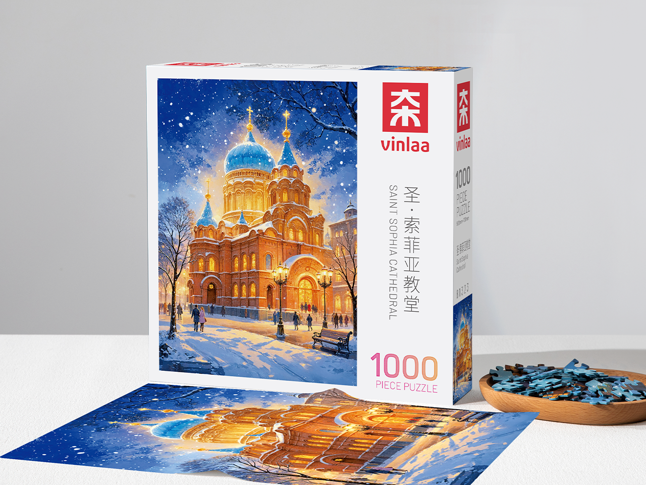 这幅画以圣索菲亚大教堂为唯一主角,挥舞着笔墨,创作出一首无声的诗篇和冬日的梦幻传奇。艺术家以细致写实的笔触,搭配抒情浪漫的色彩,营造出一种超越时空的独特氛围。作为大教堂冬季精神的艺术记录,它承载着定格在时间里的珍贵历史记忆,因而具有重要的历史价值。画面中,大教堂巍然矗立,巨大的蓝色穹顶和高耸的金色十字架在宁静的雪夜中闪烁着微光,与窗户内散发出的暖黄色光芒融为一体,驱散了刺骨的寒冷,给人一种静谧的慰藉。雪花在空中飞舞,树木银装素裹,静谧而立,路灯泛着朦胧的光芒,稀疏的行人悠闲地行走。凉爽的夜晚与温暖的灯光在这里交织舞动,将建筑永恒的庄严与冬夜的静谧浪漫完美融合,引导观者沉浸式体验其独特的历史厚重与冬日之美。