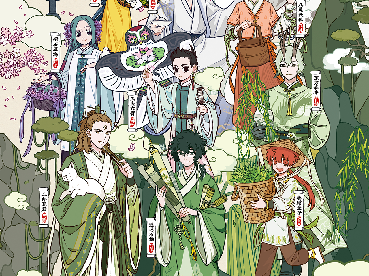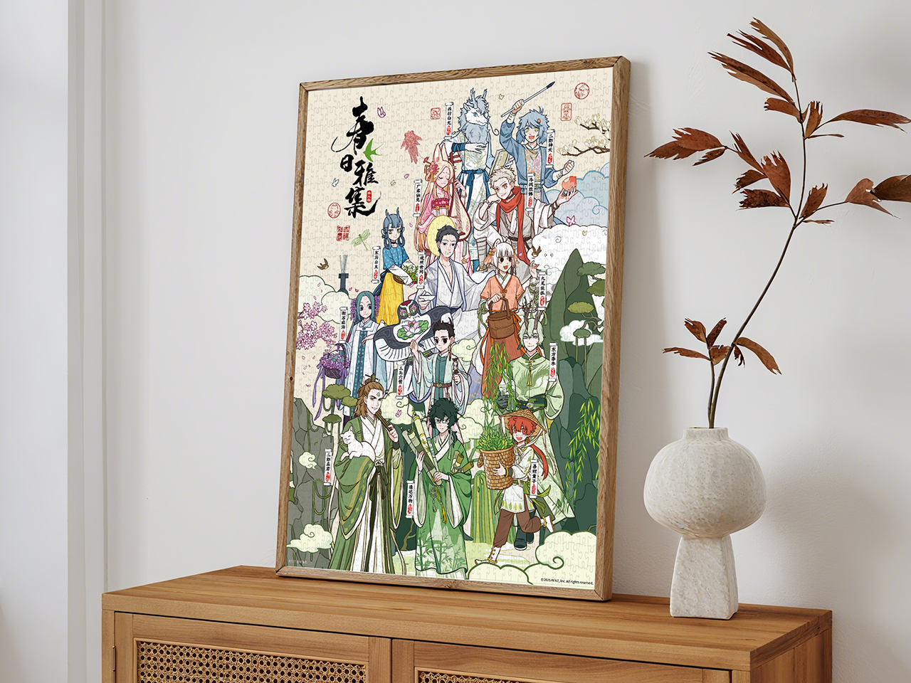 这款与‘非人在’联名的拼图充满春日生机与古韵。背景描绘了春意盎然的景象,翠绿山峦间点缀着粉嫩花枝,鸟雀蝴蝶翩跹飞舞,营造出恬淡闲适的意境。粉丝在拼图过程中既能品味角色风采,亦可细赏春日的绚烂与古雅。