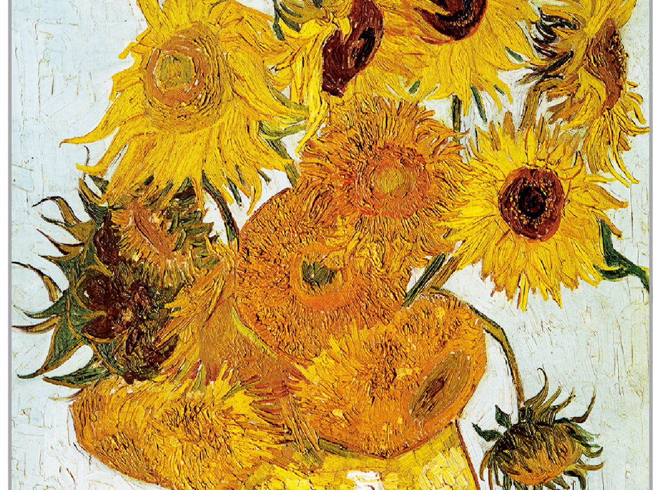 《向日葵》系列是梵高最负盛名的代表作,创作于1888年前后。他以陶罐中的向日葵为题材,创作了多幅同主题作品。画中金色花瓣如火焰般绽开,有的如烈日盛放,有的含苞待露羞怯雅致。笔触厚重富有韵律,仿佛能触摸到颜料的肌理。梵高运用明黄与橘红等鲜活色彩,搭配深色背景,既展现向日葵蓬勃的生命力,也寄托着对友情的渴望与对生活的热爱。