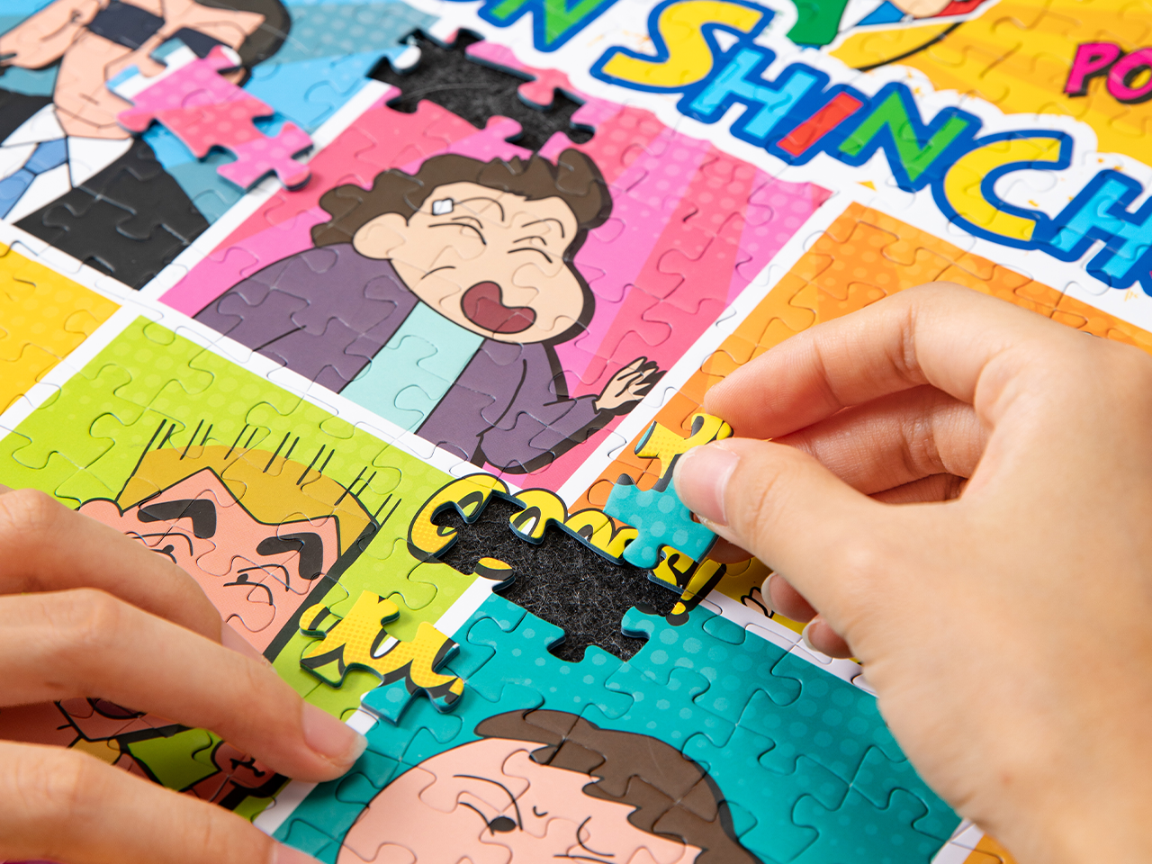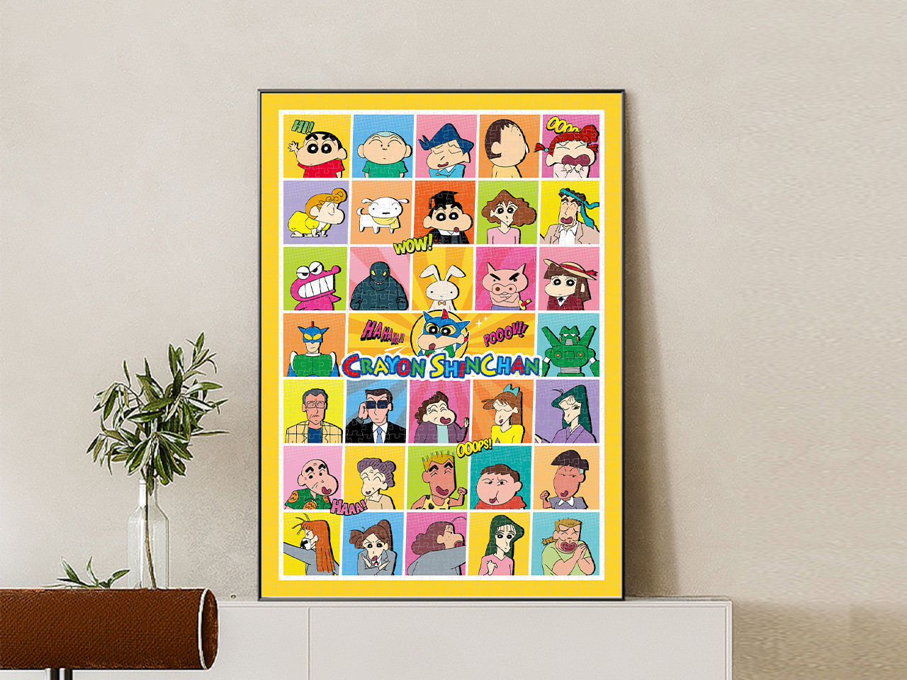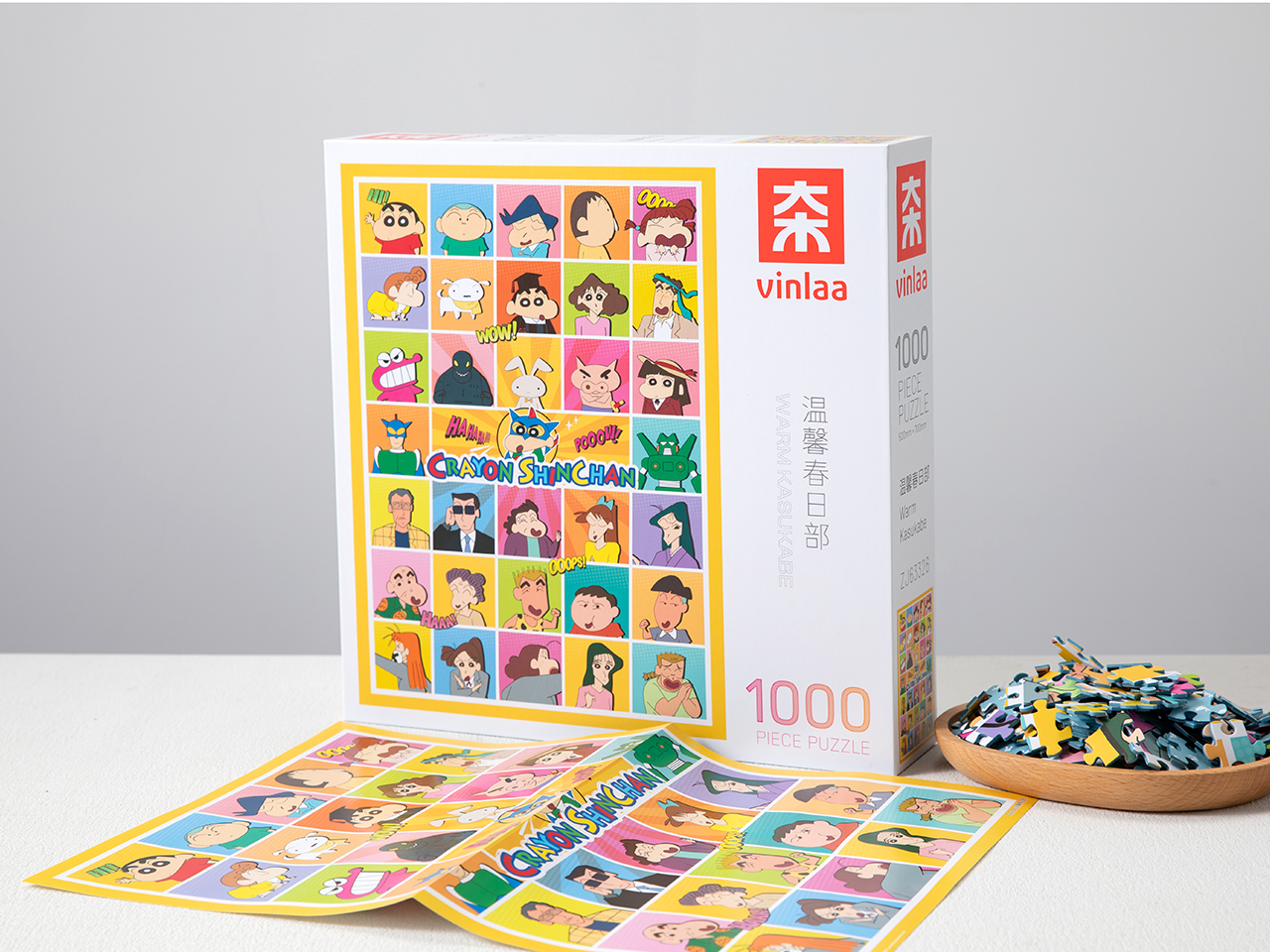 步入蜡笔小新温暖舒适的世界,1000片拼图生动呈现春日部日常生活的温馨瞬间!向日葵班的可爱孩子们在游乐场奔跑(小新、妮妮、风间、正男、阿呆和小爱,由吉永老师照看);模范的野原一家享受和谐家庭生活(广志、美冴、小葵、小白和调皮的小新),家的温暖触手可及;还有令人心动的零食与玩具伙伴加入欢乐——鳄鱼山饼干、光屁屁怪兽、挨揍兔子、胖胖左撇子蒙、动感超人和神田机器人!当然,像娜娜子姐姐和园长先生这样的熟悉面孔也齐聚一堂,共同构筑这个无可替代的‘暖心春日町’。