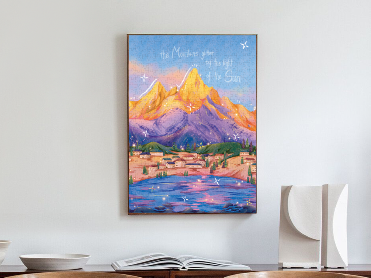 This painting depicts the magnificent scenery of the Golden Mountain bathed in sunlight in Yunnan with vibrant colours and lively brushstrokes. The entire painting seamlessly blends the breathtaking beauty of Yunnan's ‘Golden Mountain under the Sun’ with the tranquil village below through its rich colours and intricate details, offering a dual feast for both the eyes and the soul.